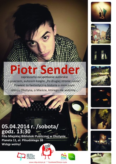 Miejska Biblioteka Publiczna zaprasza serdecznie na spotkanie z Piotrem Senderem, który opowie o swojej najnowszej powieści pt. „Po drugiej stronie cienia”. To historia o Olsztynie, jakiego nie znacie… mrocznym Mieście… Urban fantasy, które przyprawia czytelnika o dreszcze!