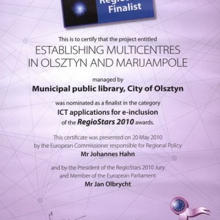 Miejska Biblioteka Publiczna w Olsztynie informuje, że projekt MultiCentrum zrealizowany wspólnie przez MBP w Olsztynie...